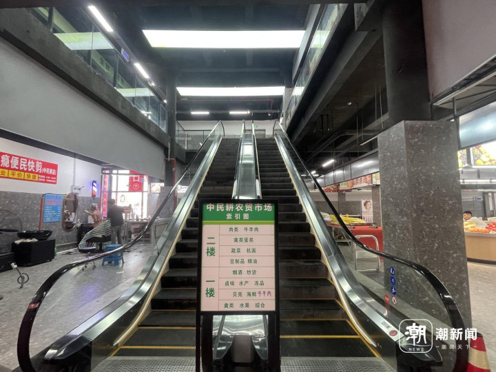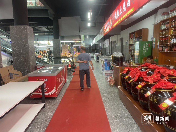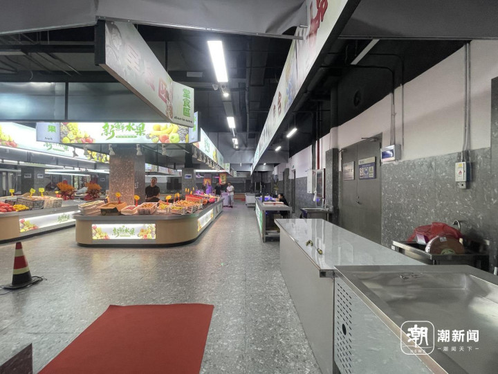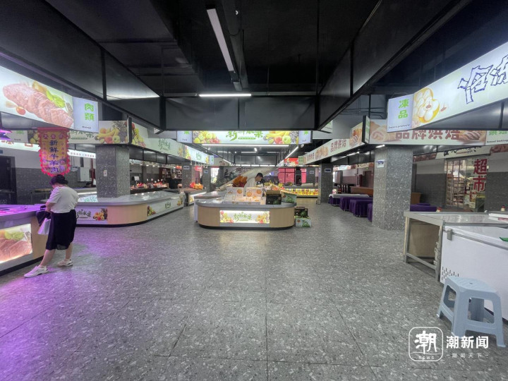 到底有多简陋?记者前往现场实地探访,内部装修的确称得上敷衍,货柜仅用铁架和塑料板材简易搭建而成,地面铺的是普通地砖。一楼和二楼全部商户加起来也仅10余家,主要经营烟酒、蔬菜、肉铺、水产、干货、水果、熟食等。记者现场目测,近半摊位空置。