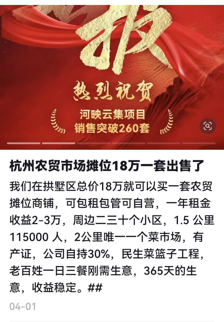 值得警惕的是,中民耕农贸市场并非个例。今年以来杭州多个城区出现了类似的农贸市场摊位违规销售或者“以租代售”现象,同样暗藏风险。