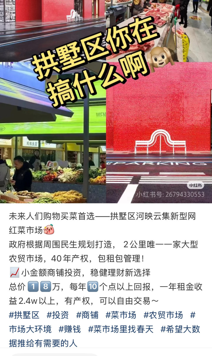 9月28日开业当天,很多投资者傻了眼。“简陋得可怕,就这还新型智慧农贸市场?”“根本就是糊弄我们,真的太难受了。”