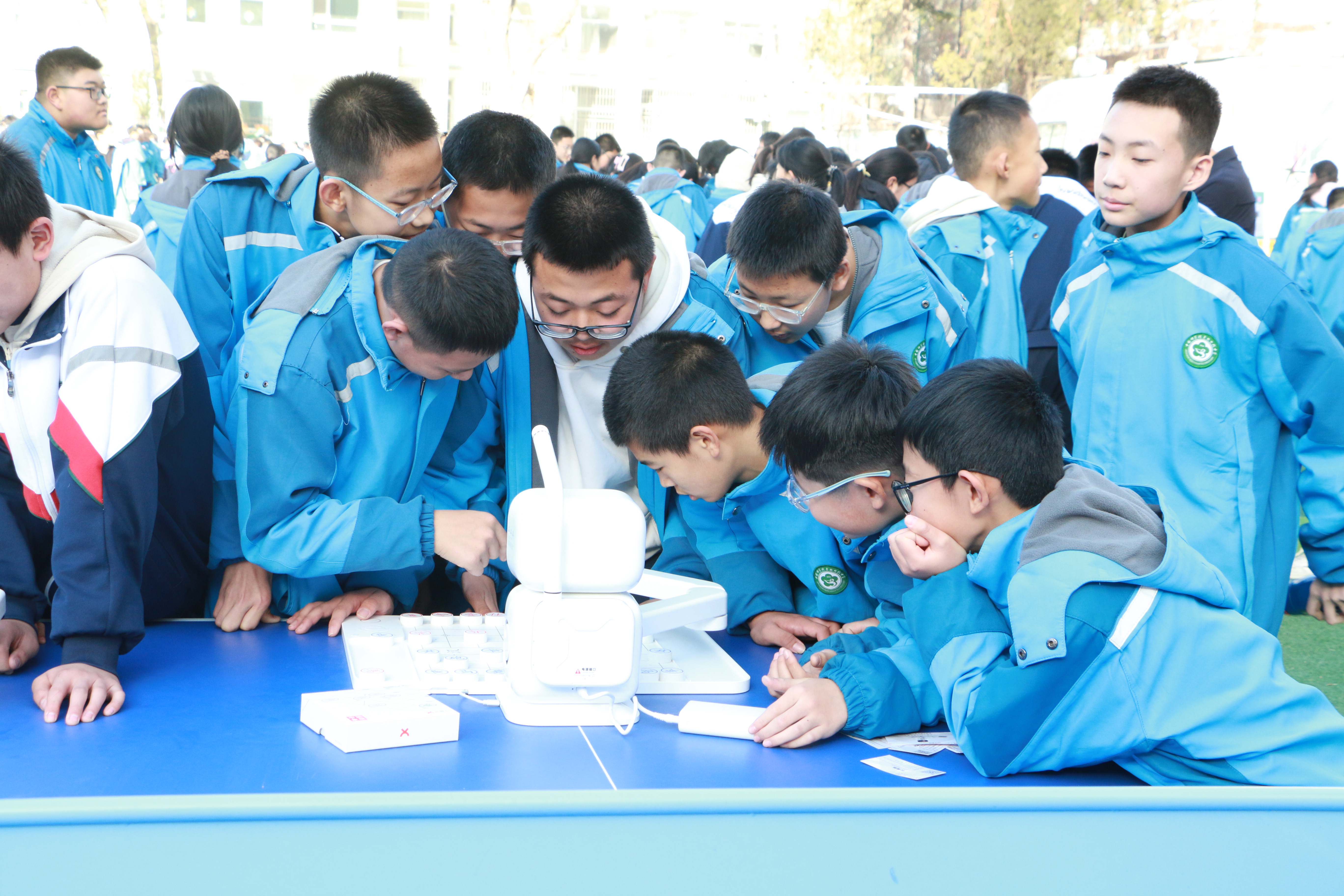 学生们挑战与AI机器人下象棋。新华社发