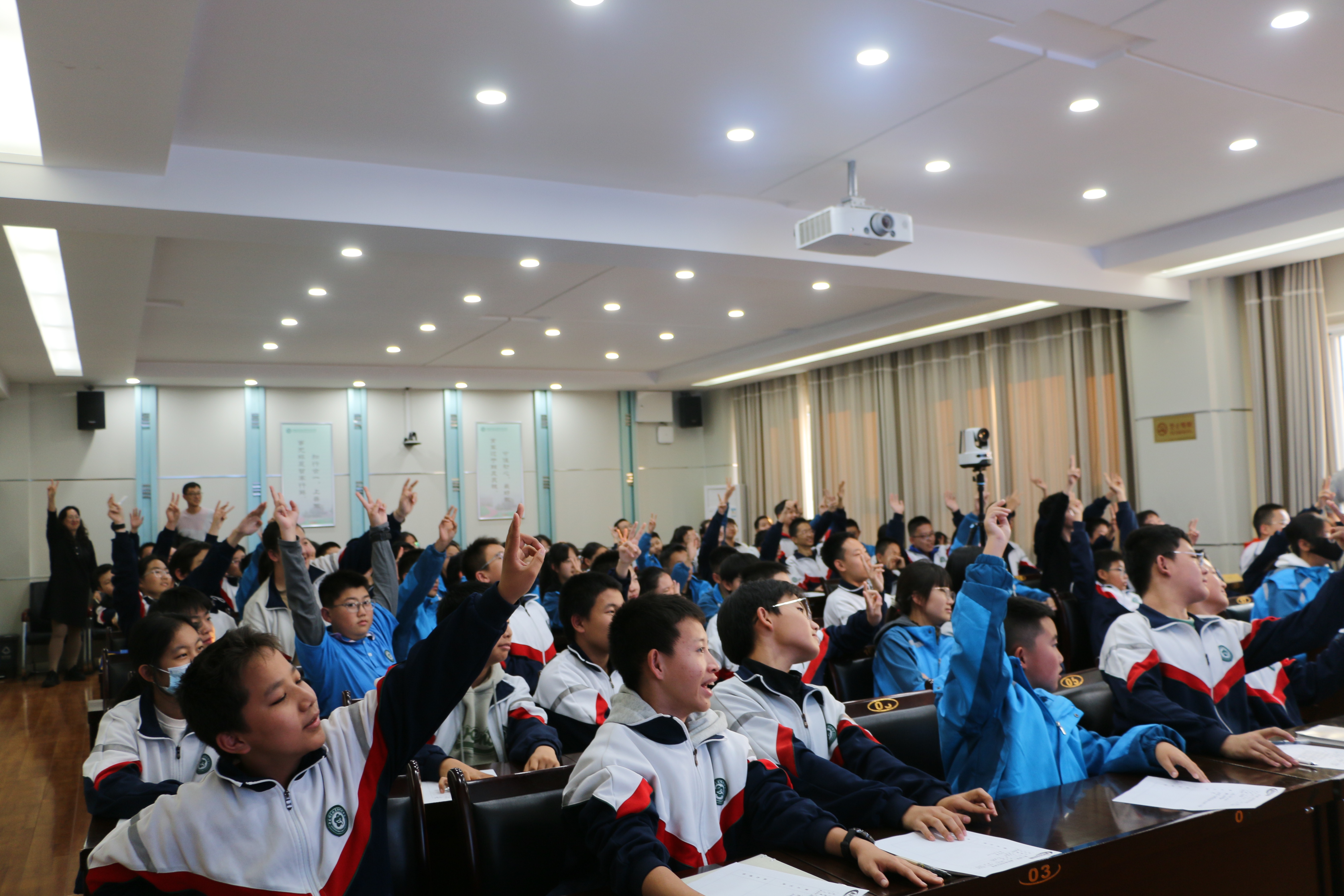 科普大讲堂上,学生们在科技工作者科普报告活动中参与互动。新华社发